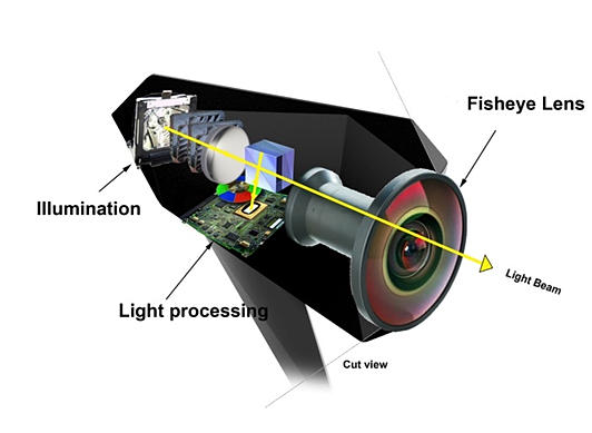 El dispositivo cuenta con tecnología de punta que se ajusta al tipo de superficie donde se proyecte, es decir se ajusta a curvas, paredes e incluso detecta a las esquinas de la pared.